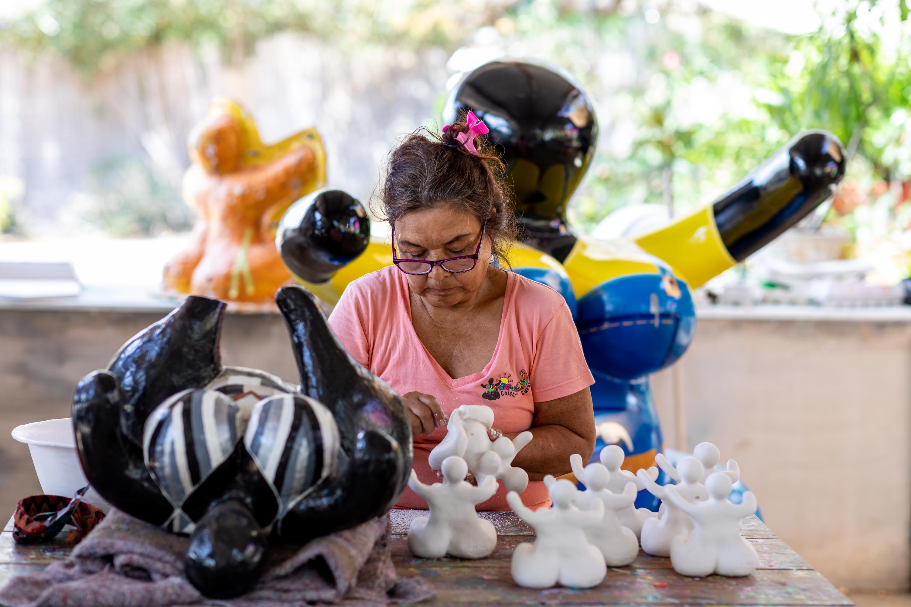 Mijn fotoserie gaat over Chichi. Chichi is de naam voor de oudste zus in de vaak arme Curaçaose gezinnen. Vader en moeder werken. Soms is de vader er zelfs niet. Deze oudste zus moet voor haar broertjes en zusjes zorgen. Vaak gaat dat ten koste van haarzelf. Als eerbetoon aan deze sterke vrouwen heeft kunstenares Serena Janet Israël een beeld ontworpen. Exemplaren van dit karakteristieke beeldje worden aan toeristen en eilandbewoners verkocht. Ruim vijftig Curaçaose vrouwen beschilderen deze beeldjes en kunnen zodoende hun familie onderhouden. Kunst krijgt zo een maatschappelijke functie