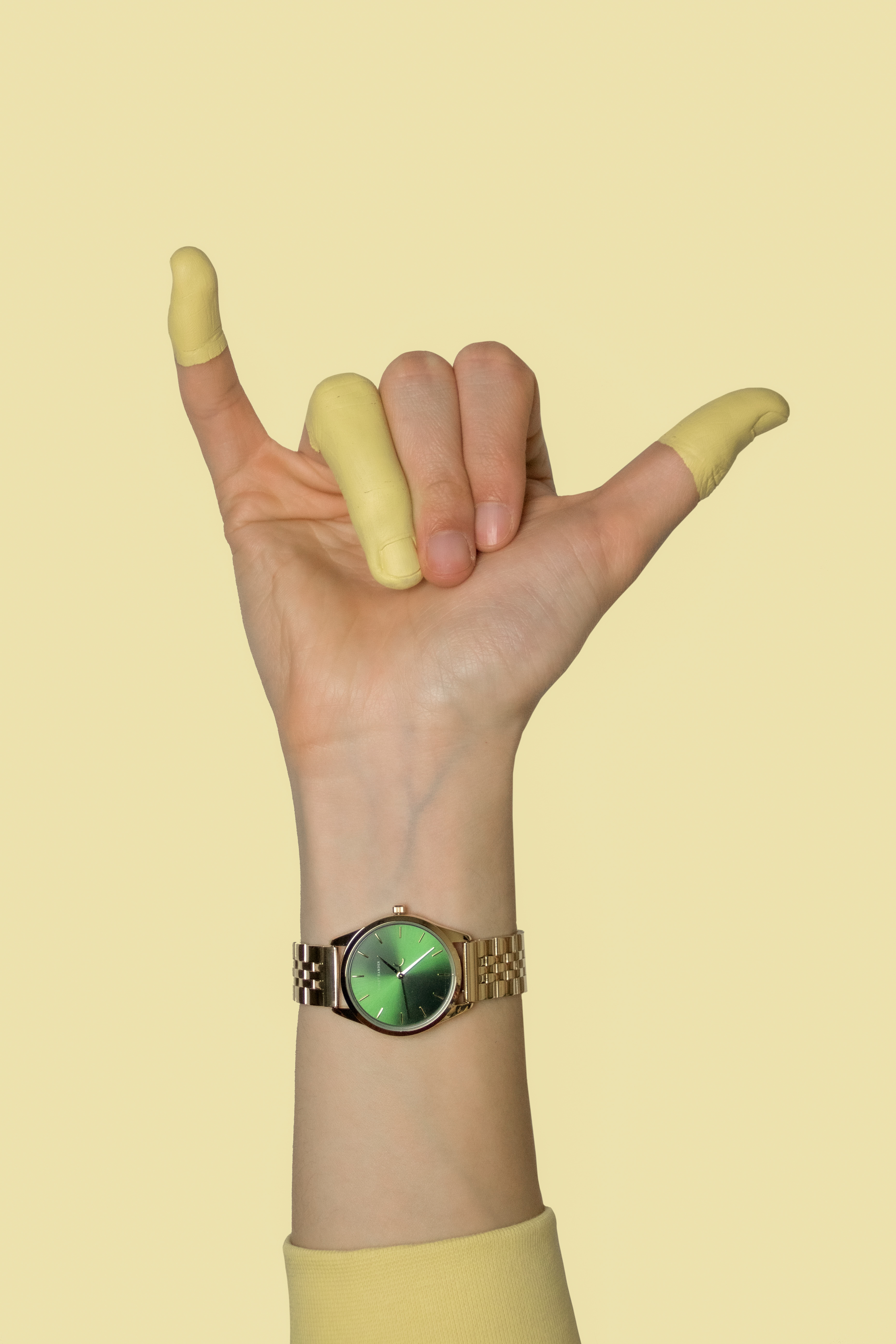Daar moest ik mijn hersens even over kraken. Ik wil namelijk niets vertéllen met mijn foto’s. Ik wil je laten zien. Handen laten namelijk heel veel zien. Zonder daadwerkelijk te vertellen. Net als in gebarentaal. Waar de houding van deze handen op geïnspireerd zijn. Er wordt niet verteld maar er wordt laten zien en uitgebeeld. Handen laten zien wie of wat je bent. Ze hebben littekens of juist een hele gave huid zonder eelt. Ze zijn kort en stevig of lang en dun. En zo is dat ook met horloges. Ze zijn stoer en mannelijk, excentriek en jeugdig. Vrouwelijk en rustig. Een horloge laat zien wie je bent. Daarom vertellen mijn foto’s niet, ze laten zien.